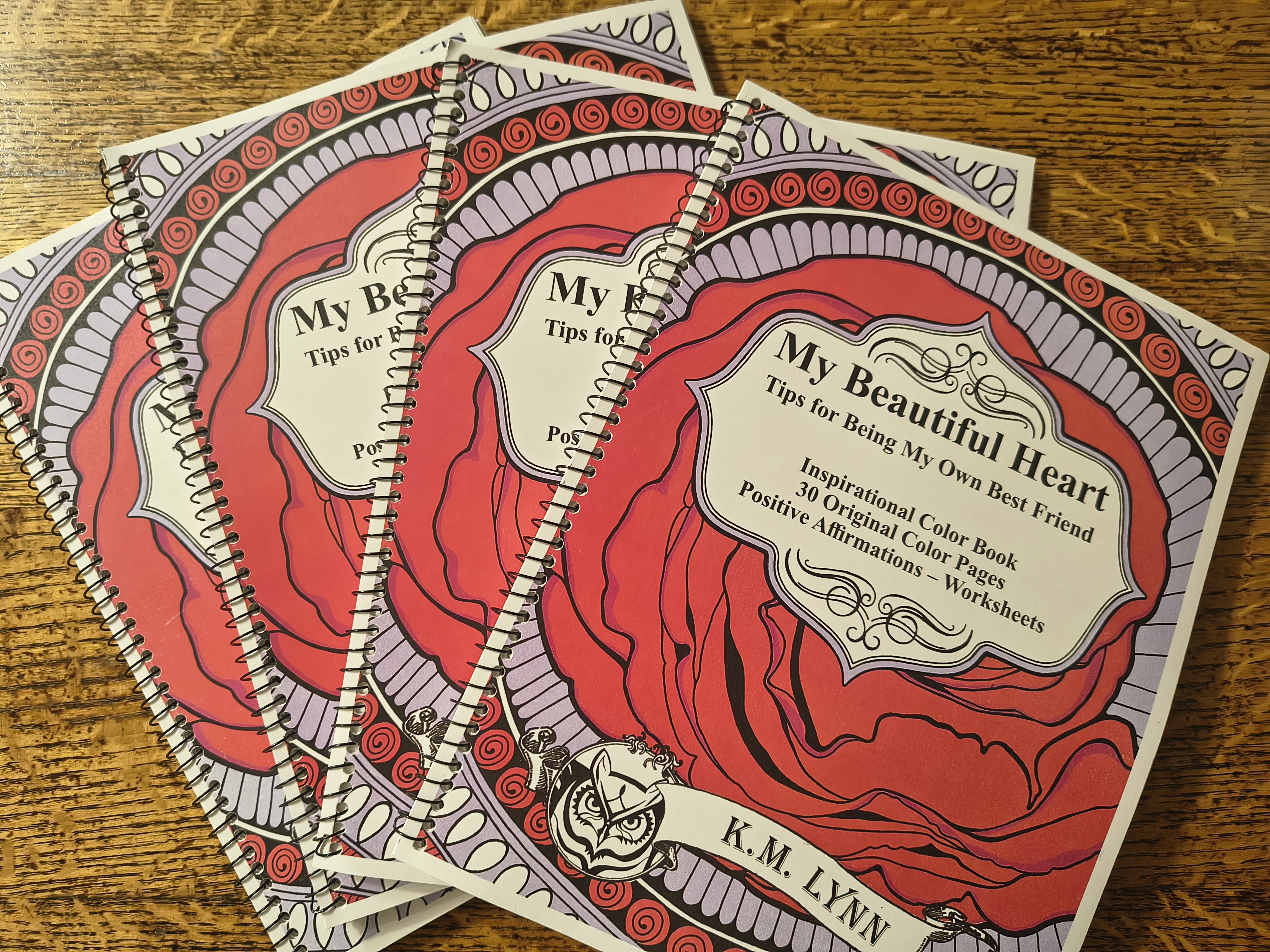 While my interests are varied, my main projects are the inspirational color books. You may see jewelry, prints, paintings, hats, and magical boxes on my page. Sometimes I list only color books, with my first being My Beautiful Heart, Tips for Being My Own Best Friend. Look for a book of dragons, and the second beautiful heart book in 2026.