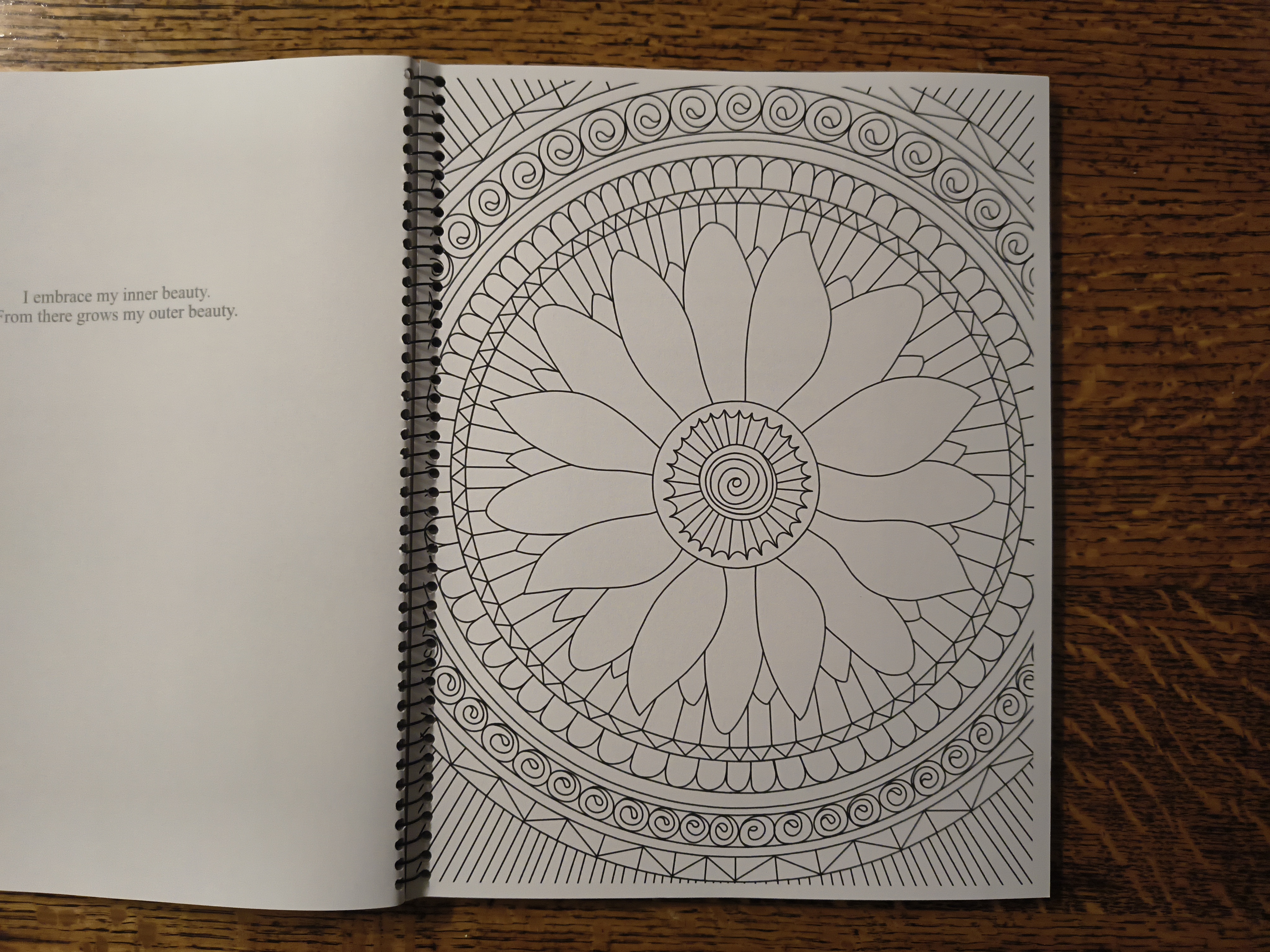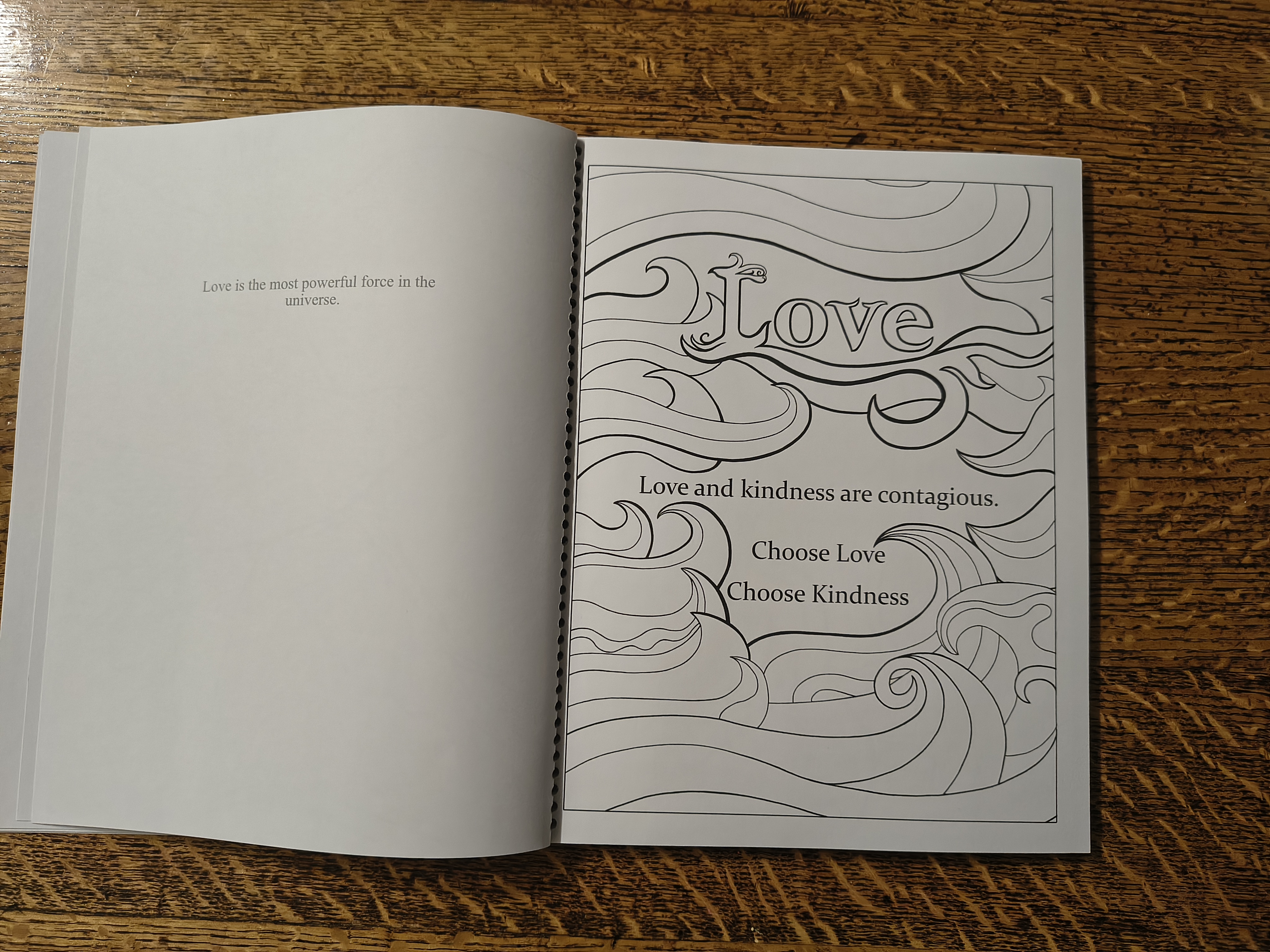 Hello to my first inspirational color book. This book was created out of my love for art, for life, and for humanity. Each color page is custom art created by me. The book is loaded with positive affirmations.