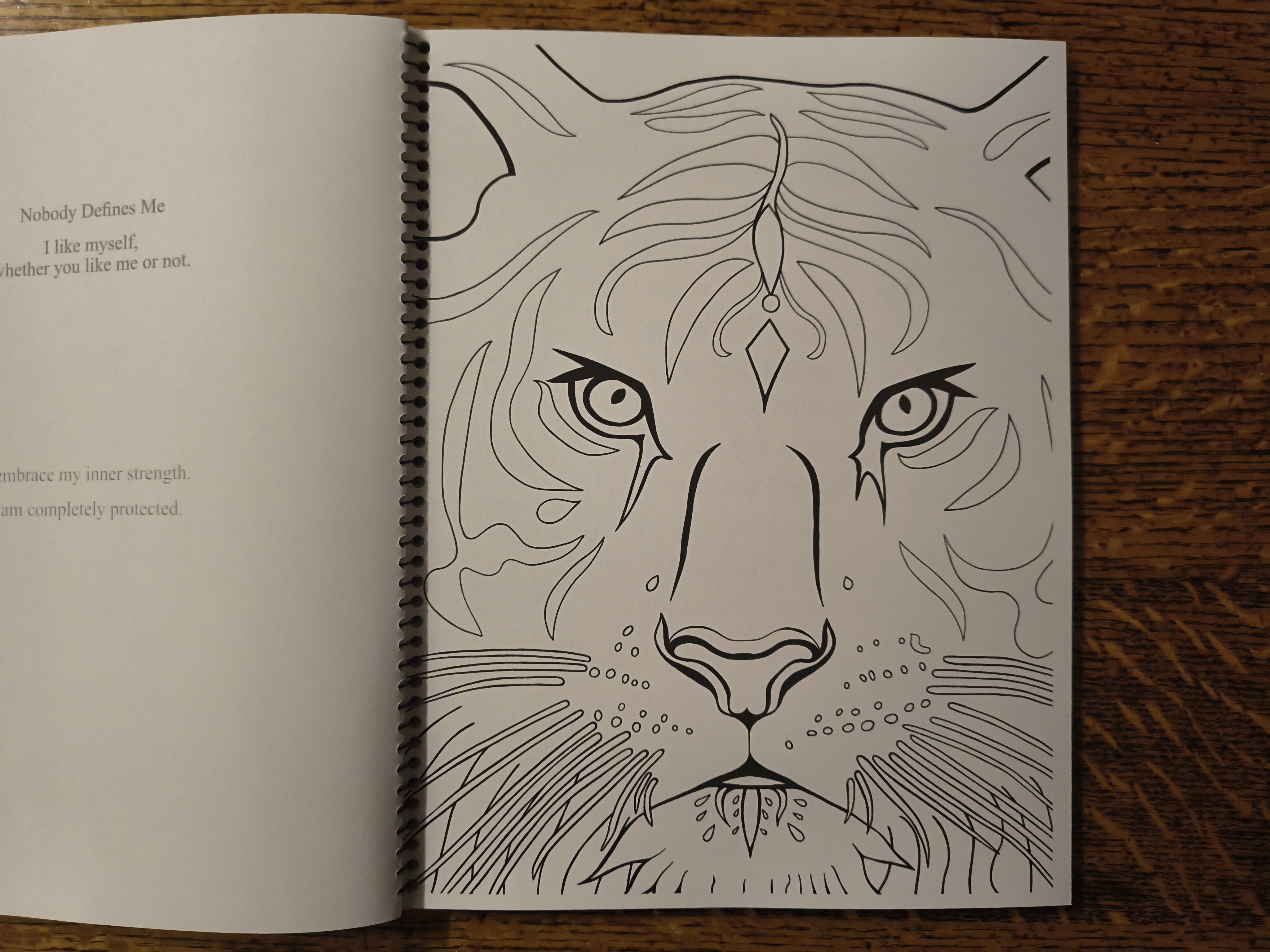All of the art and writing are original and created by me. I print each book myself on a color laser printer. I use cardstock for printing, it is similar to sketch paper, and is great for coloring. I punch and spiral bind the books myself.